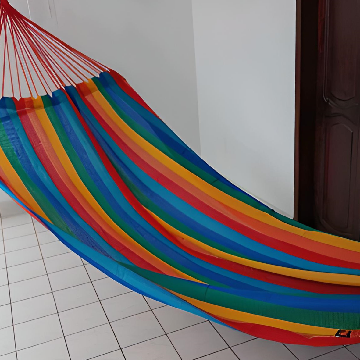 Rede de dormir produzida em fios de linha em polipropileno, que agregam durabilidade e conforto ao produto.