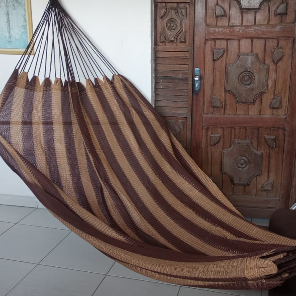 Rede de dormir produzida em fios de linha em polipropileno, que agregam durabilidade e conforto ao produto.