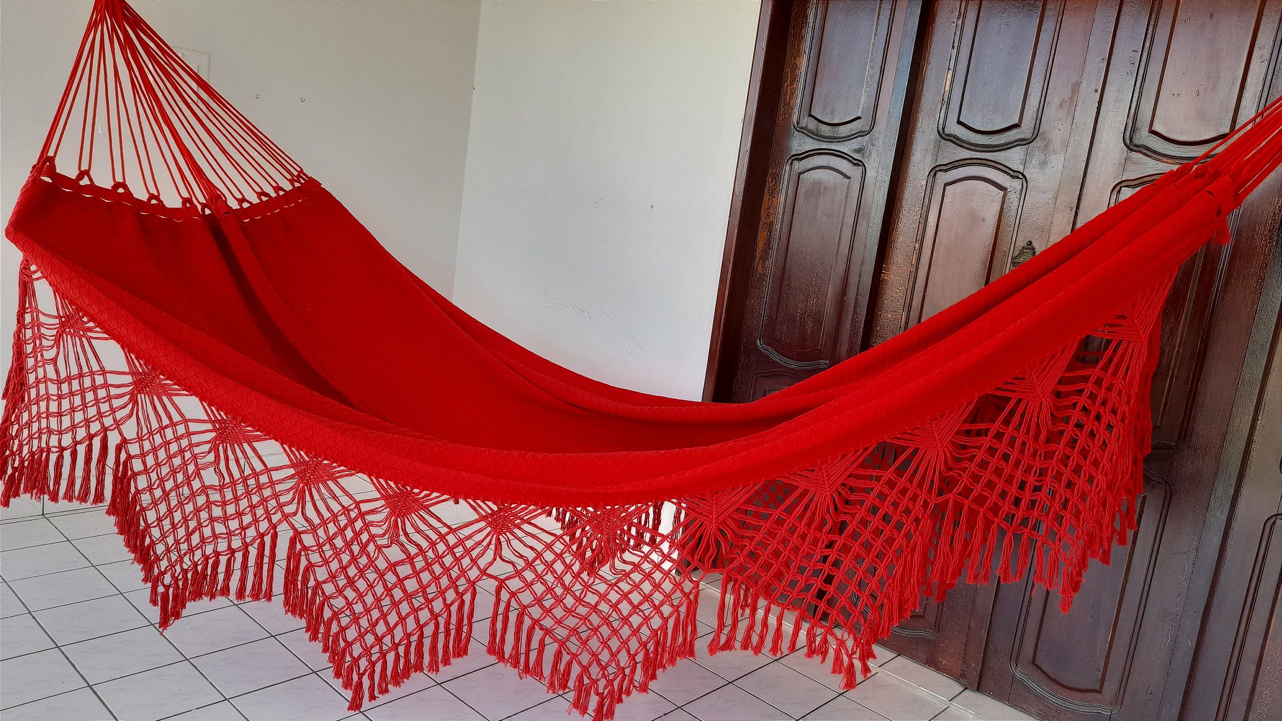 Rede de Dormir Casal Ostra (Bucho de Boi)  foi desenvolvida com um alto padrão de qualidade, com punhos reforçados garantido segurança na hora do seu descanso, além de trazer uma beleza encantadora para o seu lar.Varanda feito artesanalmente, com fios 100% algodão.