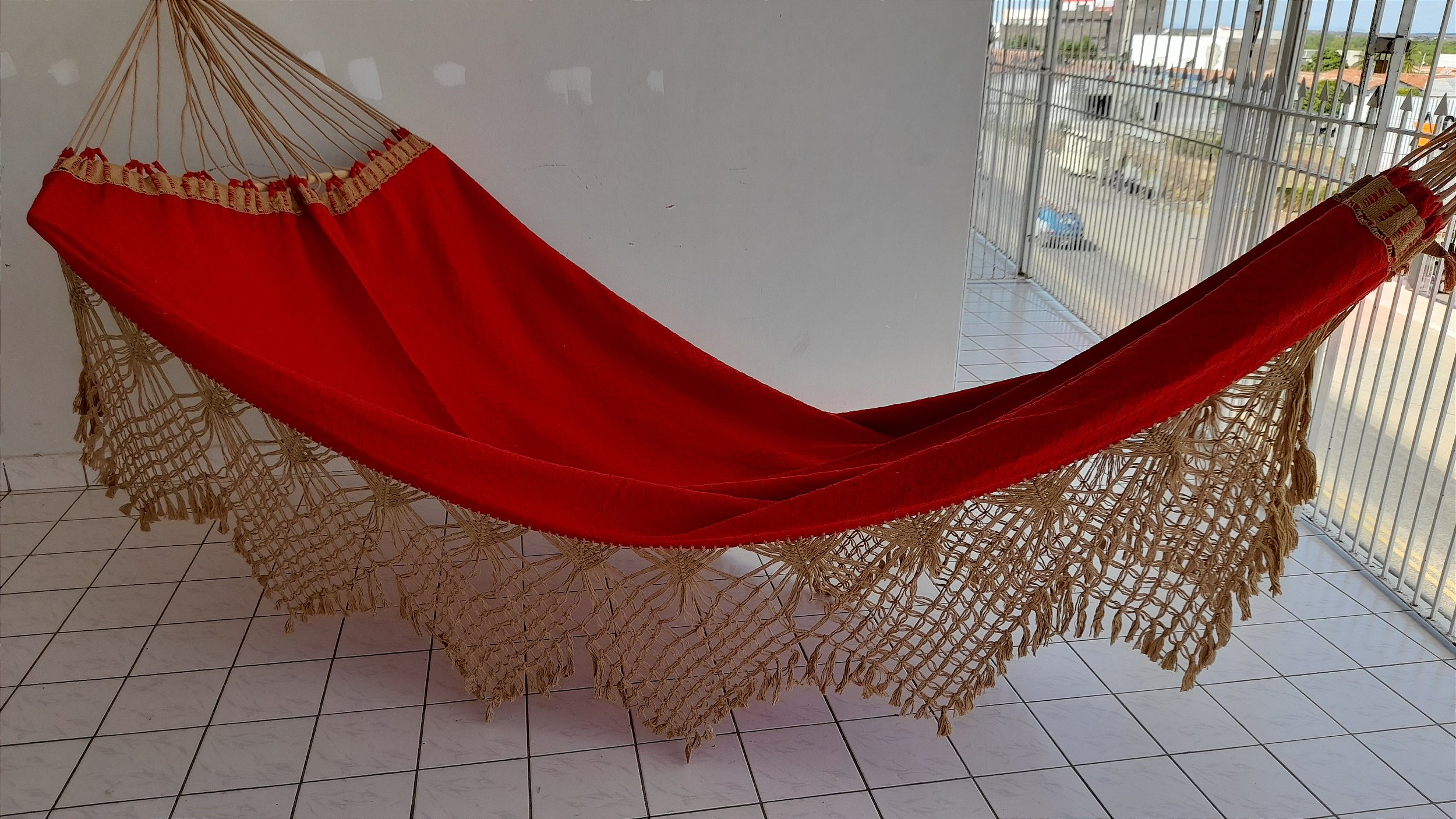 Rede de Dormir Casal Ostra Vermelha Caramelo